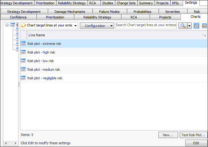 4. When you are finished, click Close.To Set the Default Risk Plot Line for the Site