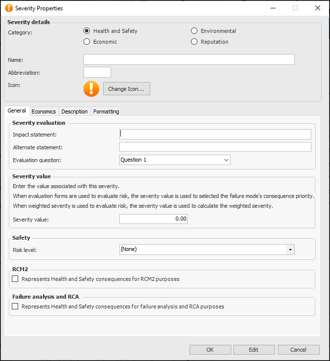 13. If the severity is to be used in RCM2 evaluations, select Represents consequences for RCM2 purposes.