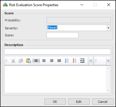 5. For each severity that the set will use, click New. The Risk Evaluation Score dialog appears: