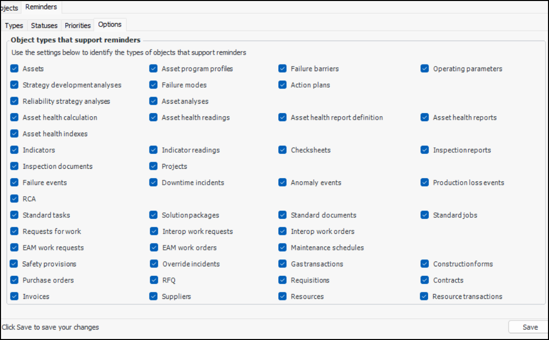 Setting up Reminder Object Types