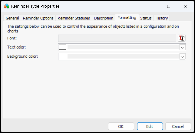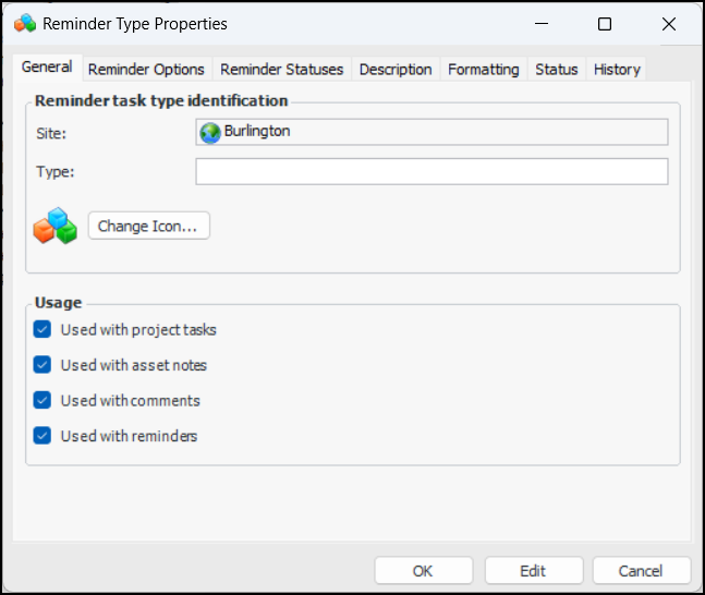 3. Click New to open the Reminder Type Properties dialog: