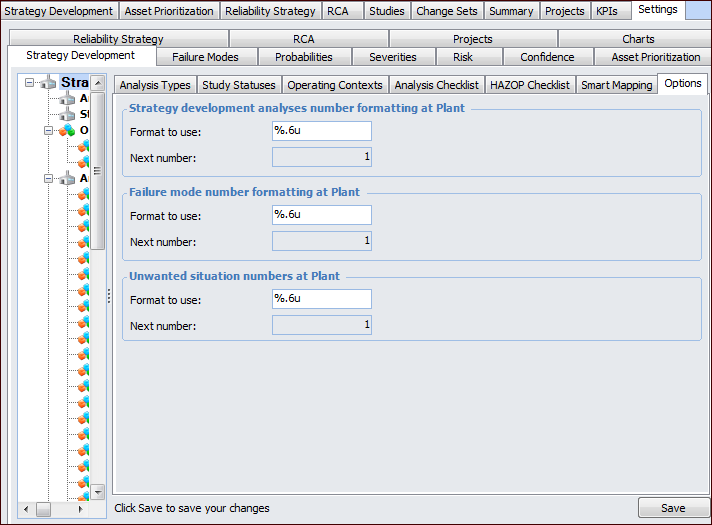 Setting the Numbering Format for Analyses, Failure Modes, and Unwanted Situations