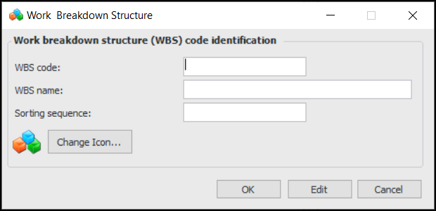 3. Click New. The Work Breakdown Structure dialog appears.