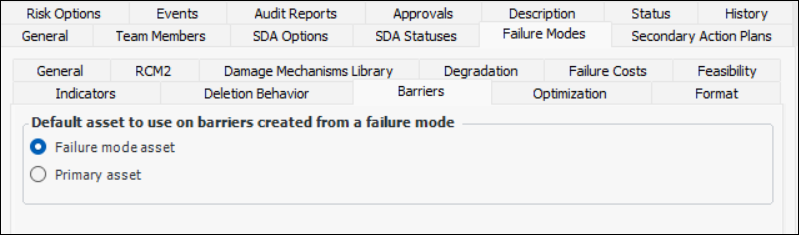 • Failure mode asset – the barrier is assigned to the asset on the failure mode by default