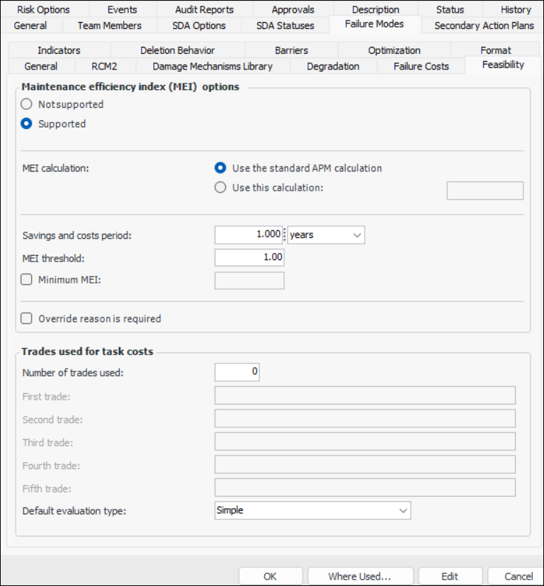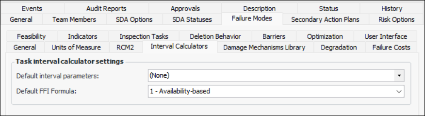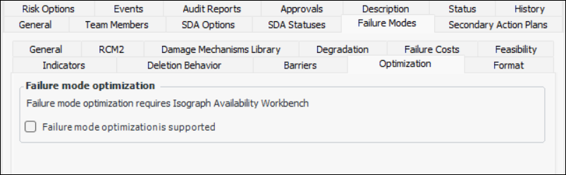 1. On the Failure Mode Options tab, select the Feasibility tab. Options on this tab are available if SIF and HAZOP analyses are not supported.