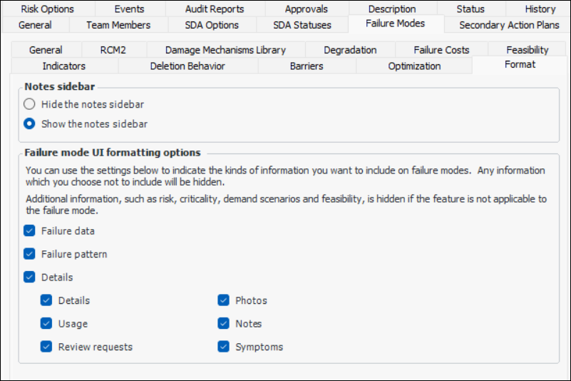 • Hide or show the Failure mode note sidebar in Maintenance Action Plan windows