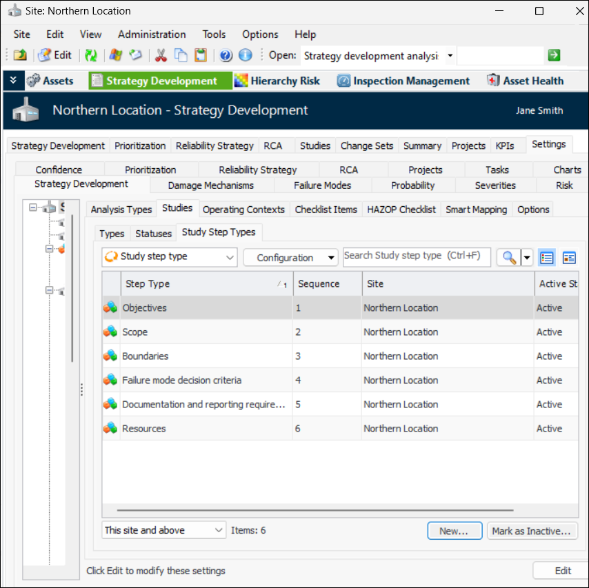 2. Select the Studies tab and then the Study Step Types tab. This tab lists all of the study types that have been defined for the site.