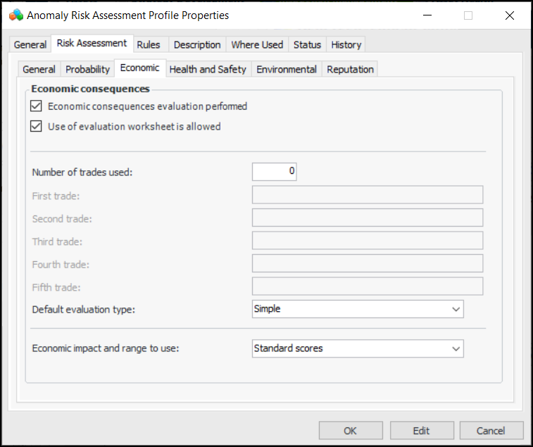 13. In the Economic impact and range to use list, select the type of values used in the evaluation, for example, standard scores or alternates.