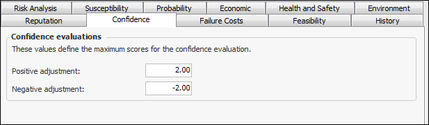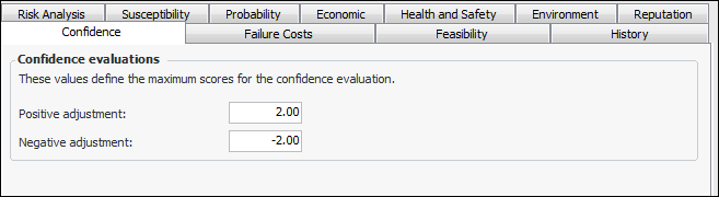 A confidence evaluation is performed to determine the inspection factor. This option is only relevant when risk analysis is performed using pop-up evaluation forms. The Confidence tab appears in the Maintenance Action Plan window.
