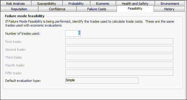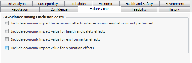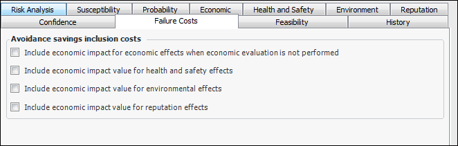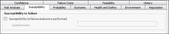 14. If risk analysis includes susceptibility to failure analysis, select the Susceptibility tab.