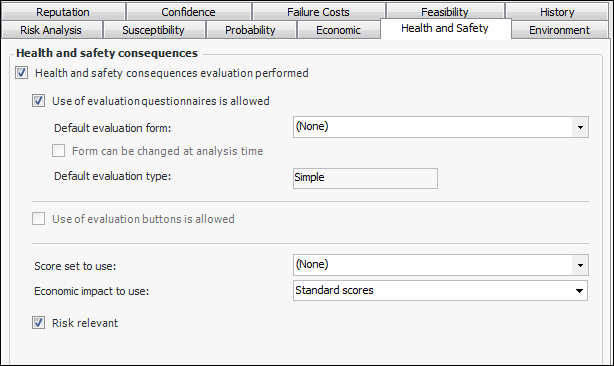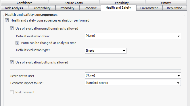 4. Click OK to save the settings and close the dialog. The settings are listed on the Risk Analysis tab.To Set Options for Using Embedded Evaluation Forms