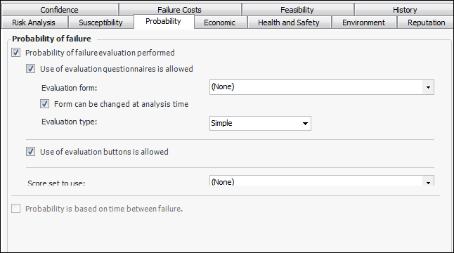 Note: The Probability is based on estimated time between failure option is available in risk options on the analysis type and on individual analyses.