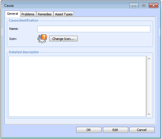 4. On the General tab, enter the name and a detailed description of the cause.