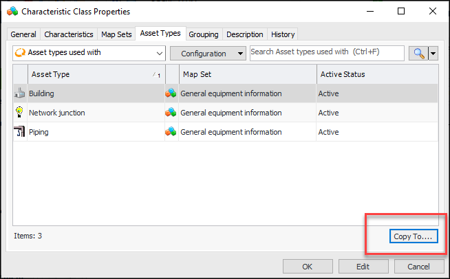 12. Click OK to close the map set.To Link an Asset Type to a Characteristic Class