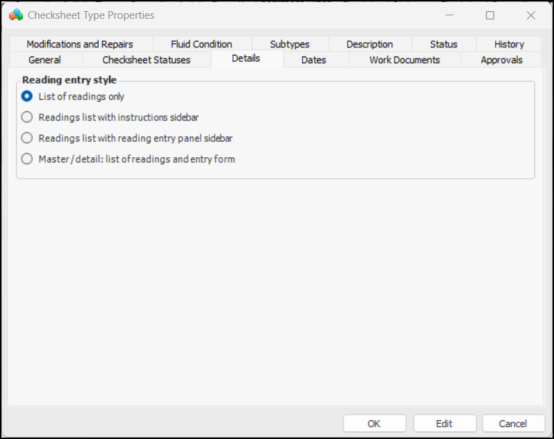 When this option is selected, the Videos tab is available in the Checksheet window. Checksheet readings support video details.