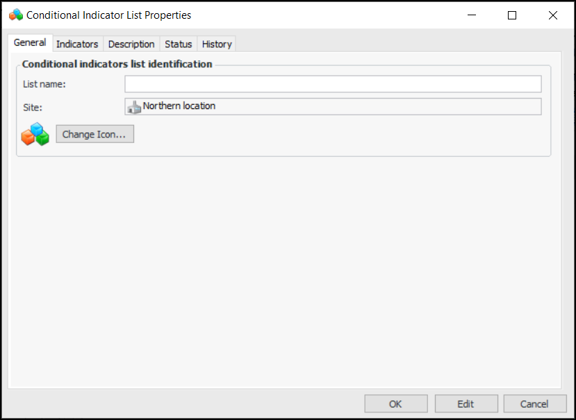 3. Click New to open the Conditional Indicator List Properties dialog: