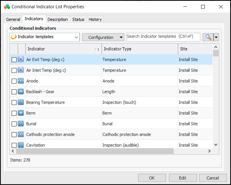 This topic explains how to create conditional indicator lists. Once created, you can add the lists to indicator states. See Adding States and Alarms to an Indicator or Template and Setting up Indicator States to Create Requests for Work.To Set up Conditional Indicators