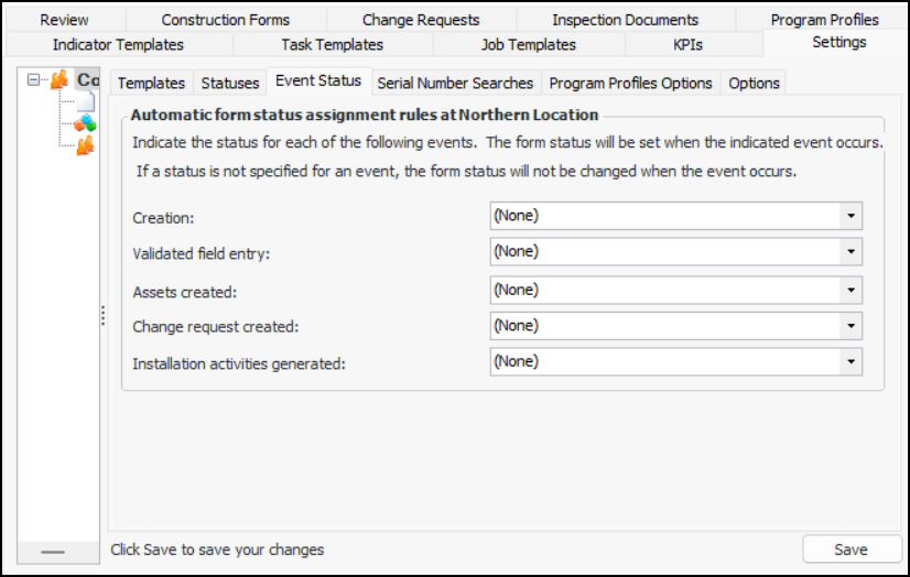 Setting up Automatic Status Assignments for Construction Forms