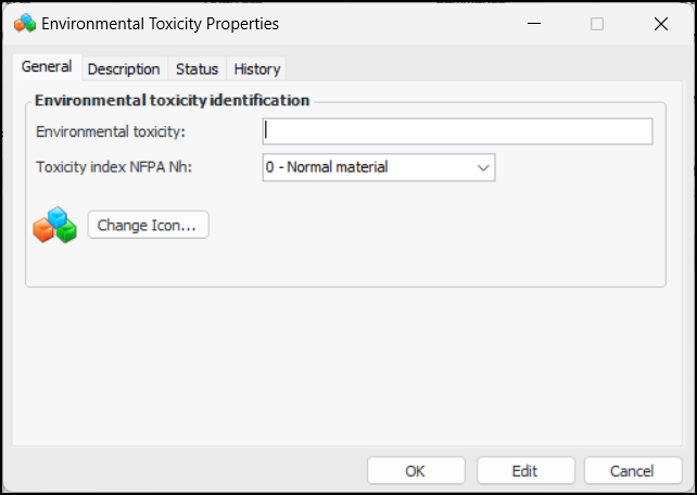 3. Click New. The Environmental Toxicity Properties dialog appears: