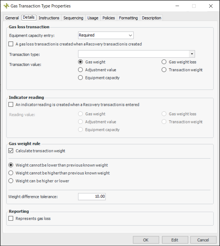 • Gas weight loss – The original transaction’s equipment capacity minus the transaction gas weight