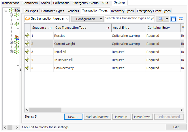 • Gas recovery – Records instances where gas is removed from the equipment and returned to the container.