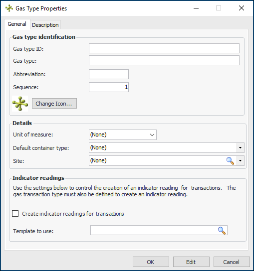 6. Tip: You can return to the Gas Type Properties dialog in the future to view a list of containers and transactions for the gas type. Select the Containers and Transactions tabs.