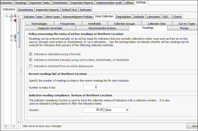 Setting Policies for Indicator Readings