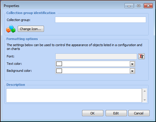 3. For each collection group that you wish to add, click New. The properties dialog appears.