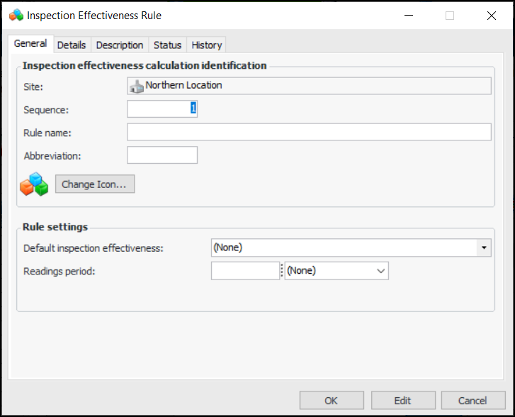 2. Click New to open the Inspection Effectiveness Rule dialog:
