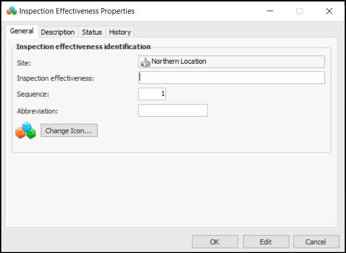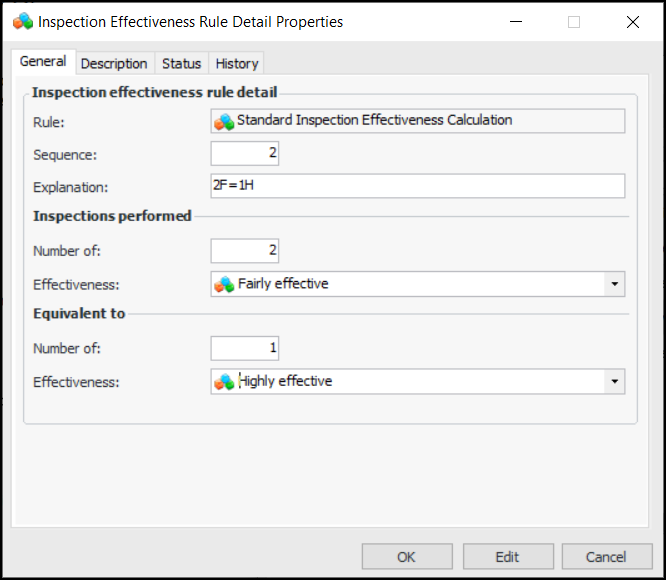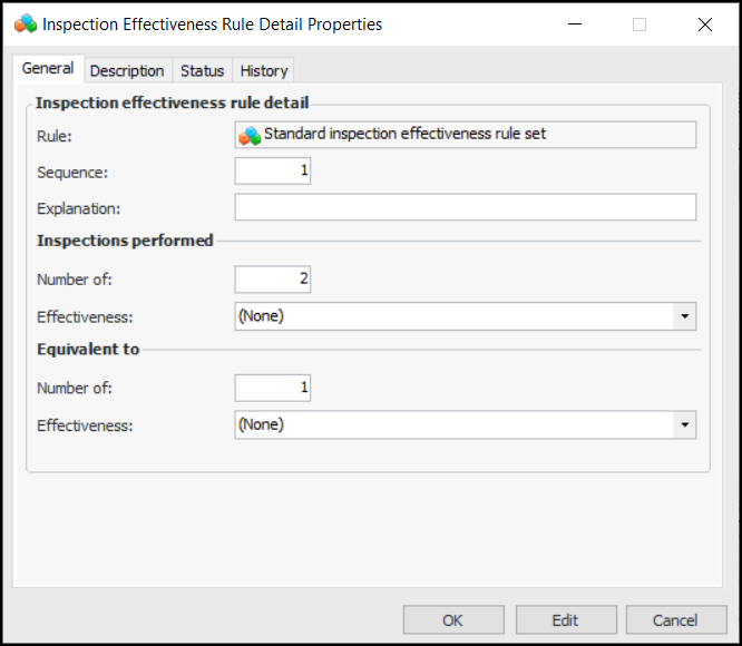 3. Click New to open the Inspection Effectiveness Properties dialog: