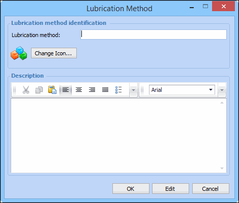 You can require that resources in a specific category have an MSDS attached. However, if you make MSDSs mandatory for a category you will not be able to save new resources without attaching an MSDS. This may make it inconvenient to enter a lot of new resources when you are first implementing your APM inventory function. Instead, you may want to select Optionally entered, a warning is issued. You can then choose to restrict the purchasing and issuing of resources without MSDSs in the category.Note: There are also settings on procedure types that control whether or not resources with expired MSDSs may be ordered or issued. See Setting up Document Types.To Set up a Lubrication Method