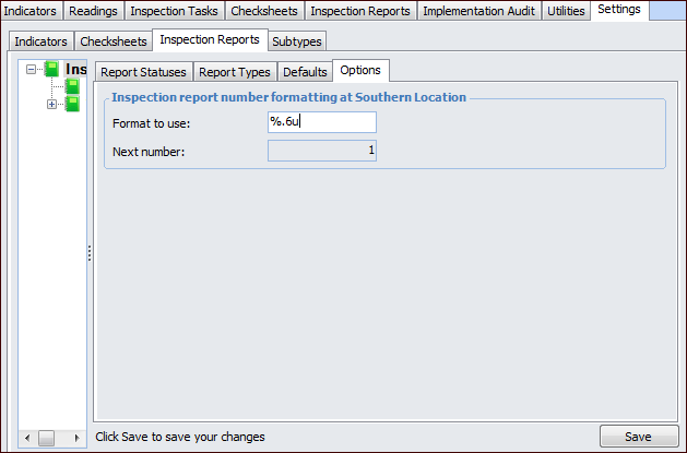 Setting the Numbering Format for Inspection Reports