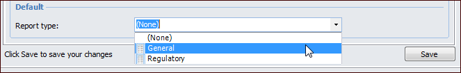 13. At the bottom of the Report Types tab, select the default report type from the list. This type will be the default selection for new reports.