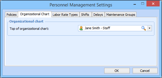 The employees at a site can be organized into a hierarchical structure that represents the reporting structure in the company. In Personnel Management settings, you can identify the top employee in the organizational chart. In the site’s Personnel view, you can adjust the employee hierarchy.To Set the Top Employee in the Chart
