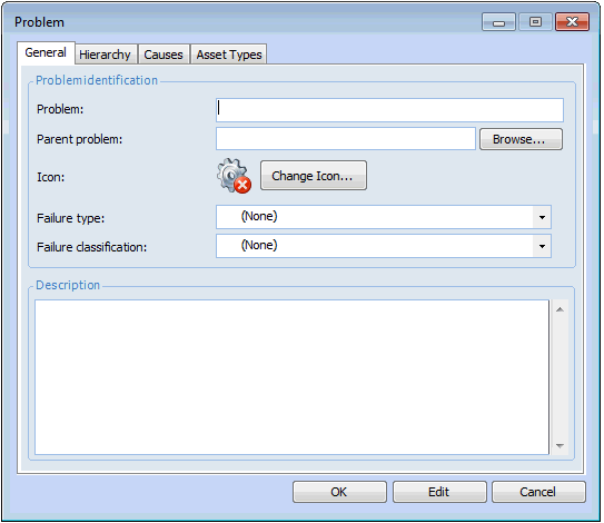 3. Click New. The Problem dialog appears.