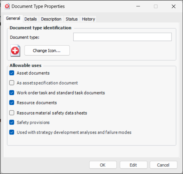 6. Select the Description tab to add more information about the document type.