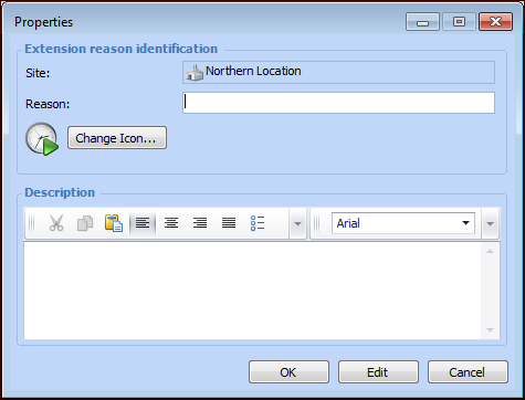 3. Click New. The extension reason Properties window appears.