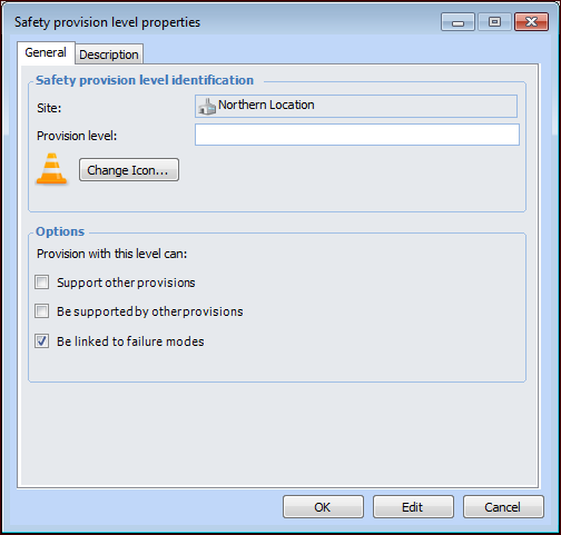 3. Click New. The Safety Provision Level Properties dialog appears.