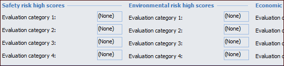 13. Select the Health and Safety tab.The options on this tab and the Environmental, Economic, and Reputation tabs control the appearance of the Usage view in the Safety Provision Version window. This view lists the failure modes that use the provision version. It also shows the highest scores for each category and for each consequence severity (for example, Safety) in the failure modes’ criticality analyses. By default, the summary looks something like this: