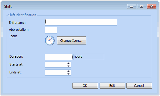 3. Click New. The Shift dialog appears.