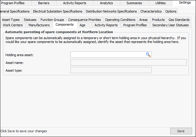 4. Click Browse to open the Asset Selector dialog. Select the asset you want to parent all uninstalled components and click OK. The asset now appears in the Components tab.