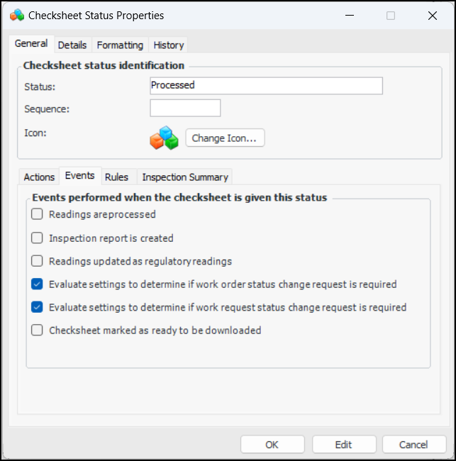 • No checksheet matches any of the statuses – None of the checksheets associated with the work document have statuses that match any of the statuses selected in the settings