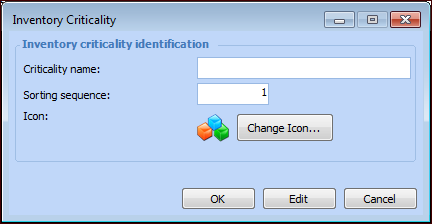 3. Click New. The Inventory Criticality dialog appears.