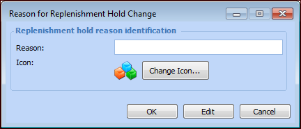 3. Click New. The Reason for Replenishment Hold Change dialog appears.