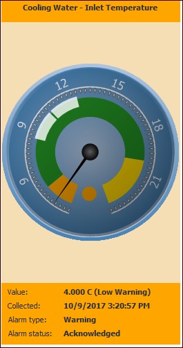 Readings tab to quickly view the value collected and alarm status in the gauge. For example: