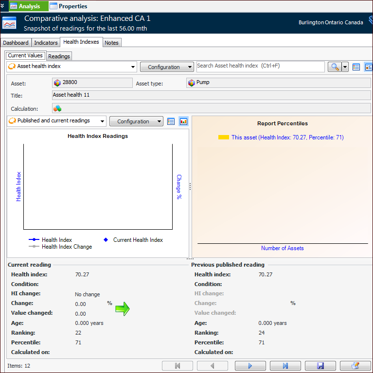 If indicators have also been selected, the Advanced Analysis tab displays both readings and health indexes.