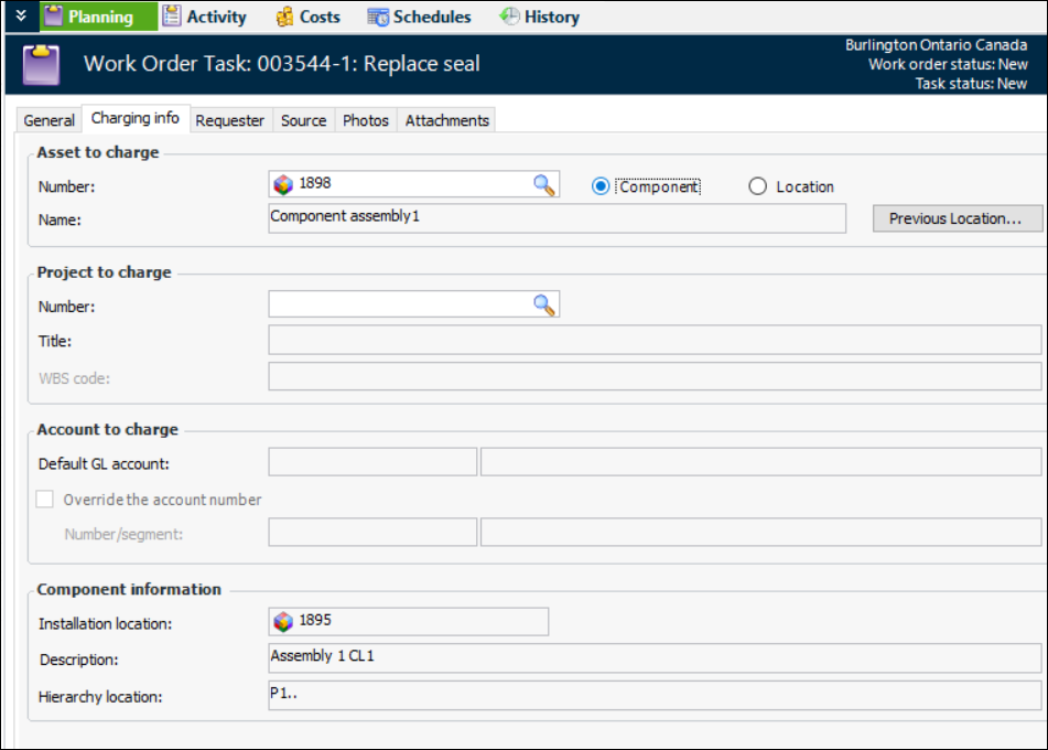 Charging Work Costs to a Component’s Location