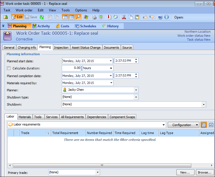 Entering Planning Information for a Work Order Task