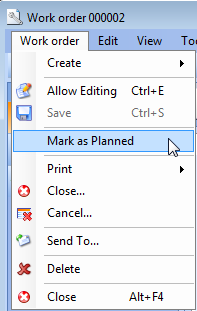 While you are planning a work order, the work order status is “In planning.” Once you have finished planning all of the tasks on a work order, move the work order to the “Planned” status. If the site’s Unplanned Work Order Policy has been set to “do not allow activity on unplanned work orders,” users will not be able to record labor or service transactions, create requisitions, purchase orders, or pick lists, or enter indicator readings for the work order until it moves to the “Planned” status.If a work order requires approval, APM sets the work order status to “Planned” once it has been fully approved. The Mark as Planned option is not available for work orders requiring approval.Once a work order has the “Planned” status, the planning information for the work order is frozen. You will not be able to add tasks, requirements, indicators, or procedures to the work order. To change the planning information for a planned work order, you must redraft it. See Redrafting a Work Order.To Mark a Work Order as Planned