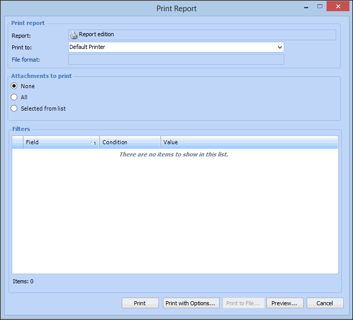6. If you are not printing attachments, you can click Preview to see what the report will look like before printing it.